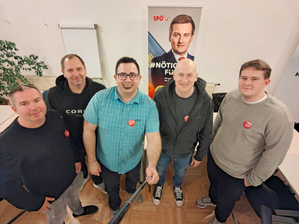 Foto: Selfie: v.l: Roman Ruckendorfer, BSc, Thomas Schleinzer, Bezirksvorsitzender Bernd Butschell, MSc, SPÖ-Bezirksvorsitzender Stefan Hinterberger und David Rein
