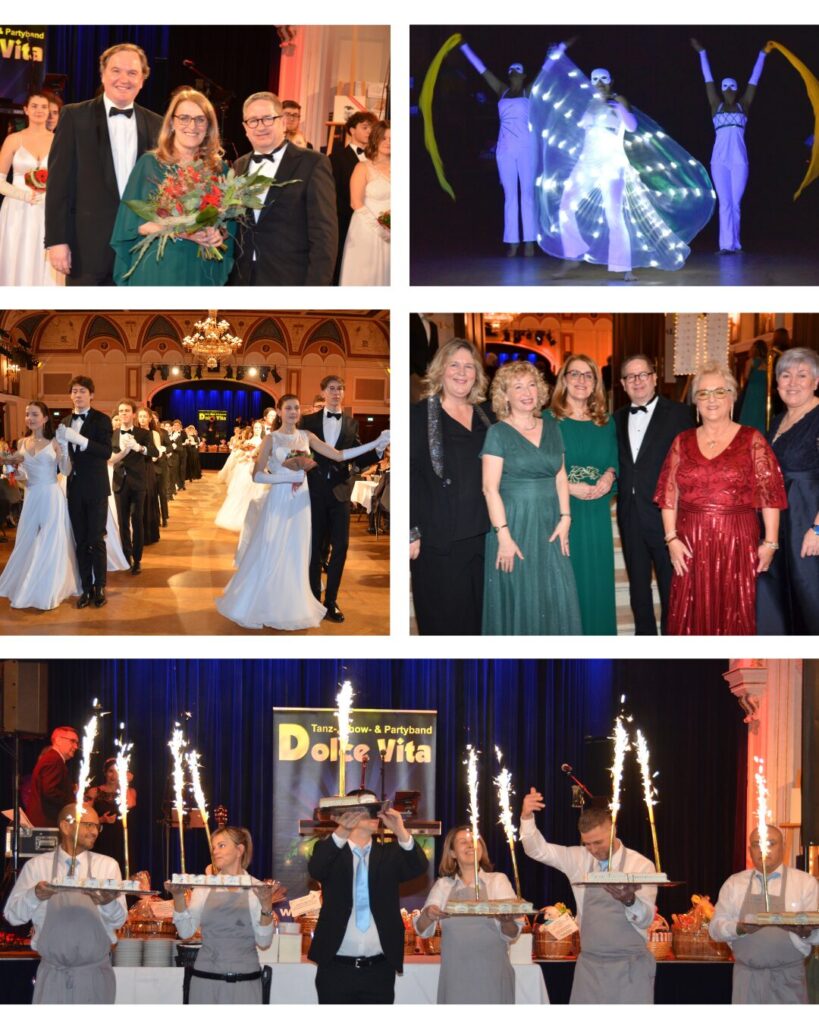 Mag.a Alexandra Lurger führte charmant durch die Ballnacht, die von der Tanzschule Rueff eröffnet wurde. Natürlich durfte auch das Eisbuffet als beliebtes Highlight nicht fehlen und bei der Mitter-nachtseinlage staunten die Gäste über die LED-Performance von den Artistinnen der „The Shining Shadows“. Den Abschluss bildeten wieder die riesige Tombola mit tollen Preisen, sowie die Ver-steigerung von drei Bildern von Künstler Andreas Lang, einem Fanpackage von den Ridin Dudes und dem begehrten Riesenteddy.